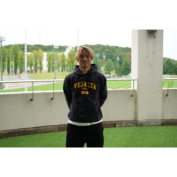 胸元に大きくロゴが入ったスウェットパーカーです。